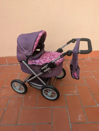 Vendo precioso cochecito de juguete para muñecas en perfecto estado. Muy cuidado, casi sin uso. Color: Morado y rosa, con divertido estampado de círculos. Capota: Plegable para mayor realismo. Manillar: Regulable en altura para adaptarse al niño/a. Extras: Incluye un pequeño bolso a juego colgando del manillar y una cesta portaobjetos inferior. ¡Ideal para que los más pequeños se diviertan paseando a sus muñecos favoritos!