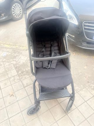 Silla de paseo tipo paraguas de la marca Mima. Solo entrega en mano en Granada. - Plegado tipo paraguas. - Asas ergonómicas. - Ruedas dobles con freno. - Respaldo reclinable, con arnés de seguridad ajustable. - Cesta inferior, capota, y bolsillo posterior - Materiales muy robustos, soporta bastante peso. - Muy poco usada aunque la capota al ser de polipiel tiene desperfectos leves en los pliegues.