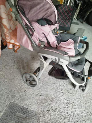 Carro de bebé rosa y gris