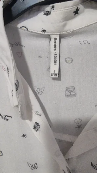 Camisa de manga larga para niña de la marca BERSHKA con un divertido estampado de perros. - Cuello camisero. - Cierre de botones. - Estampado de perros.