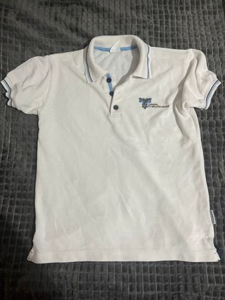 Polo blanco de uniforme escolar del Colegio Franciscanos. Ideal para el día a día en el colegio. - Cuello tipo polo con botones. - Detalle de ribete azul en cuello y mangas. - Logo del colegio bordado en el pecho. -Talla 12