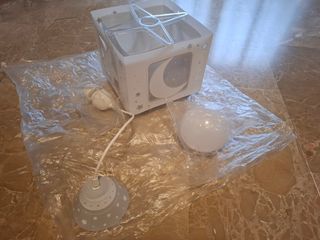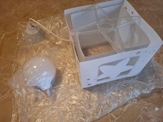 Lámpara infantil con un diseño encantador de luna y estrellas, perfecta para la habitación de los más pequeños. Incluye una esfera difusora. - Pantalla con motivos de luna y estrellas. - Estructura superior transparente. - Cable con portalámparas. - Pantalla de tela con motivos celestes. - Incluye portalámparas y cableado. - Base superior de plástico transparente.