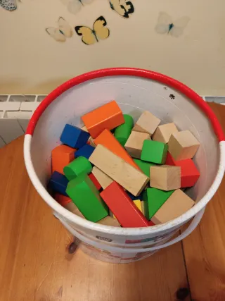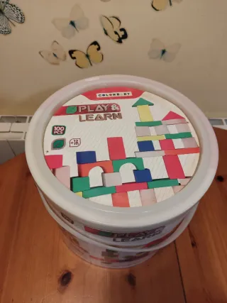 Set de bloques de construcción de madera Play & Learn. - Contiene 100 piezas. - Apto para mayores de 12 meses.