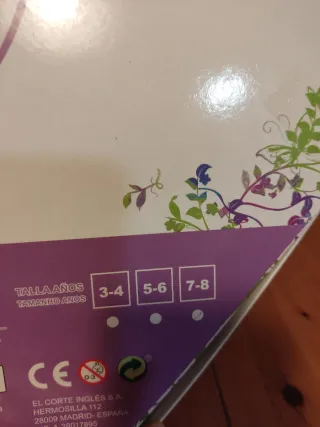 Disfraz de Tinkerbell para niña, talla M. Incluye vestido y alas. - Diseño inspirado en el personaje de Disney. - Vestido verde con detalles morados. - Alas transparentes con purpurina.