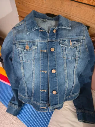 Tejana vaquera clásica para niña. Perfecta para cualquier ocasión. - Diseño de mezclilla azul. - Cierre de botones. - Bolsillos en el pecho.