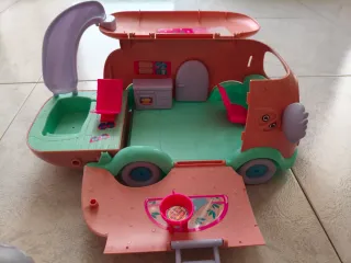 Se vende caravana de los Bebés Llorones con accesorios. - Incluye figura de bebé. - Incluye bicicleta rosa. - Incluye escalera y mesa. - Diseño de caravana con ruedas.