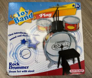 Batería infantil Bontempi Rock Drummer con taburete. Ideal para la primera introducción a la música, el sonido y el ritmo. Caja ligeramente dañada - Incluye batería y taburete. - Diseño Rock Drummer. - Marca Bontempi. - Fabricado en Italia.