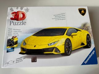 Puzzle 3D del Lamborghini Huracán EVO en color Giallo. Construye tu propio superdeportivo. - Piezas de alta calidad. - Tecnología Easyclick para un montaje sin pegamento. - Ruedas funcionales incluidas.