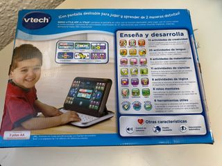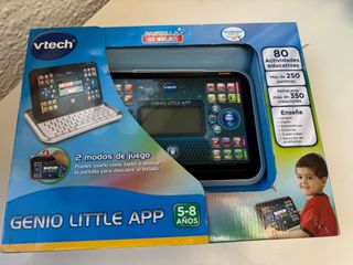 Ordenador educativo Vtech Genio Little App. - Pantalla en color. - 80 actividades educativas. - Más de 250 palabras. - Almacena más de 350 creaciones. - Enseña: Lengua, Inglés, Matemáticas, Ciencias, Creatividad, Solución de problemas. - 2 modos de juego: tablet o deslizando la pantalla para descubrir el teclado. - Edad recomendada: 5-8 años. Caja ligeramente dañada