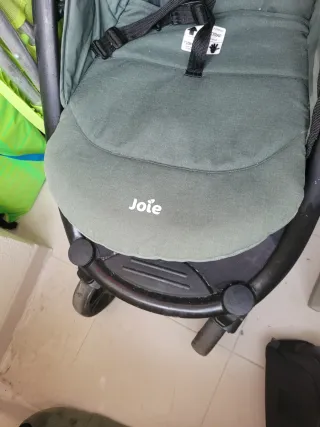 Carrito de bebé Joie en color verde. Ideal para paseos cómodos. - Asiento acolchado. - Arnés de seguridad. - Ruedas giratorias.