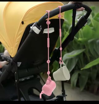 Práctica cuerda para colgar objetos en el carrito de bebé. Ayuda a mantener tus pertenencias organizadas y al alcance. - Color teja - Diseño con enganches ajustables.