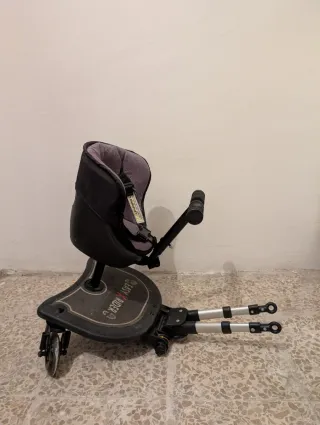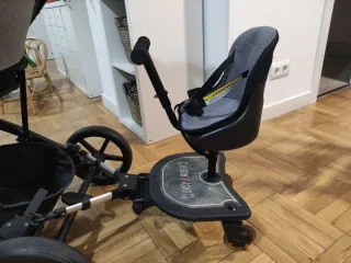 Accesorio para carrito de bebé que permite añadir un asiento para el hermano mayor - Incorpora asiento para hermano mayor. - Plataforma gris. - Barras de conexión plateadas.