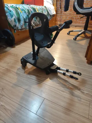 Accesorio para carrito de bebé marca Easy Rider. - Plataforma con asiento. - Ruedas para facilitar el movimiento. - Barras de conexión ajustables.