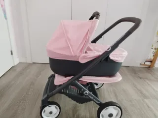 Carrito Combi 3 en 1 Maxi-Cosi Rosa, Capazo extraíble, Silla de Paseo y Cochecito, Ruedas silenciosas, para muñecas de hasta 42 cm. Incluye capazo extraíble.