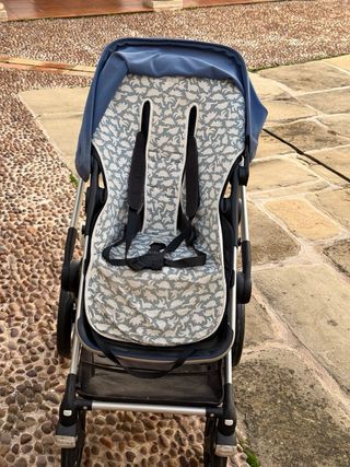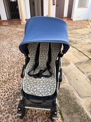 Vendo carrito de bebé marca Bugaboo modelo Fox 2. Se encuetra en buen estado. - De lo más ligero y fácil de maniobrar. - Plegado compacto en 2 piezas. - Capota XXL con ventana y panel integrado ventilado, para crear circulación de aire. - Manillar ajustable en altura. - Desde el nacimiento hasta 22 kg. - Color azul marino y aluminio. - Incluye capazo. - Lo entrego con otra capota de color beige (la que sale en las fotos). - Incluye plástico de lluvia. Tiene signos de uso, algún roce en el chasis y el asidero, pero texti