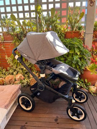 Un año de uso (feb 2024-marzo 2025). Comprado el 25 de noviembre de 2023 con garantia hasta el 25 de noviembre de 2027. 400€ Incluye: Conjunto del cochecito con la silla, el capazo, y la burbuja de lluvia. Por 100€ mas incluye los siguientes extras: El portabebes nuna turtle air. Adaptadores para conectar el portabebes al carrito. El portavosos bugaboo. Saco cubrepies para invierno . Lo vendo porque ahora tenemos dos bebes y compramos un cochecito doble. Si compras los accesorios incluidos nuevos por separado te cuestan: Turtle air: 249€ Adaptadores: 55€ Portavasos: 35€ Saco: 150€