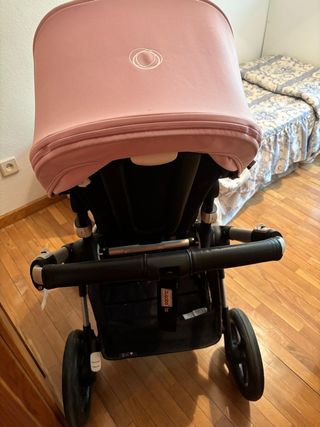 Carrito de bebé Bugaboo Fox 3 en color negro y capota rosa. - Chasis negro. - Capazo y silla en color rosa. - Ruedas todoterreno. Está impecable, poco uso. El capazo ni se usó porque mi hija odiaba el carro. Tengo la caja del carro. Barra de seguridad a estrenar. Extras como portavasos y porta móviles disponibles.