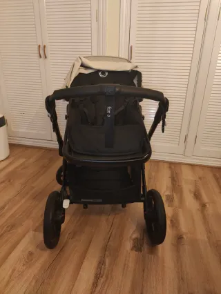 Bugaboo Fox 2 en color negro. Sin duda, el mejor carrito que hemos tenido: súper ligero, se maneja con una sola mano y amortigua de maravilla en cualquier terreno. El cochecito está en muy buen estado, siempre se ha usado con mucho mimo y el chasis apenas tiene marcas de uso (puedes verlo en las fotos). ¿Qué incluye el pack? Chasis Fox 2: Robusto y con plegado compacto. Capazo completo: Prácticamente nuevo, ideal para los primeros meses del bebé. Silla de paseo: Ergonómica, reversible (mirando a los padres o al frente) y reclinable en varias posiciones. Capota extensible: Con ventanilla de ventilación.