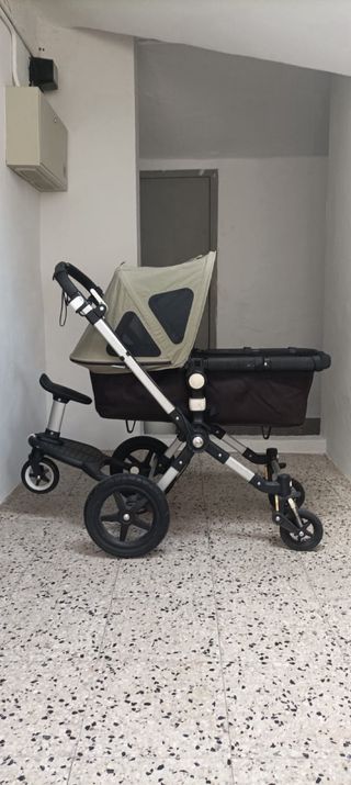 Carrito Bugaboo Cameleon 3 con asiento adicional para hermano mayor. - Chasis de aluminio. - Asiento principal ergonómico. - Ruedas todoterreno. - capota verano caqui