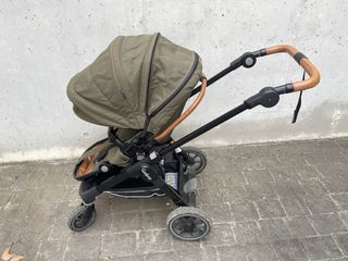 Se puede orientar hacia los padres o hacia el exterior. Se convierte fácilmente de modo capazo a silla. El manillar se ajusta en altura para mayor comodidad. ruedas neumáticas . las delanteras son pivotantes con posibilidad de bloqueo. Plegado muy compacto. Ruedas traseras se quitan con un clip para ocupar menos espacio en el plegado o incluso para pasar por sitios estrechos. Buena amortiguación. color gris. Capota con ventanita con cortina en la parte de atrás para ver al bebé. incluye: cesta, cubrepies, saco, plástico de lluvia, forro acolchado para el capazo, almohada, protectores acolchados para el arnés, bomba de aire, perfect
