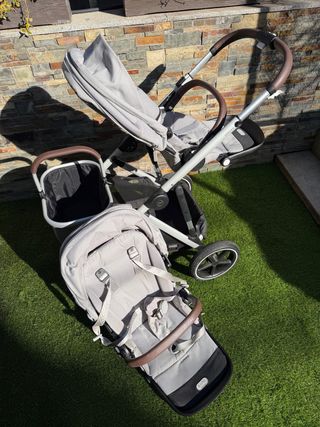 Cybex Gazelle S cochecito doble Stone Grey – chasis silver – como nuevo ⸻ Vendo Cybex Gazelle S cochecito doble en color Stone Grey con chasis silver, comprado en julio y con solo 3 meses de uso (mi niño mayor ya no quiere cochecito) Está en estado impecable, muy poco usado y siempre bien cuidado. Incluye: • Carrito Cybex Gazelle S (precio nuevo 750 €) • Asiento adicional original Cybex • Nido recién nacido (Newborn Nest) original (asiento + nido comprados en julio por 349,90 €) • Todas las piezas originales, sin golpes ni desperfectos Ideal para hermanos seguidos o gemelos. Muy cómodo, estable, fácil de manejar y con cesta.