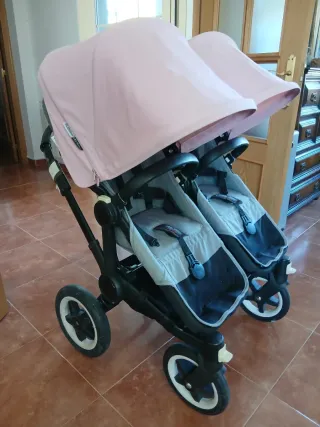 Vendo este carrito gemelar Bugaboo Donkey, ideal para padres de mellizos o hermanos seguidos. Está muy cuidado, usado con delicadeza y totalmente funcional. ✔️ Dos capotas rosa en muy buen estado ✔️ Chasis sólido, estable y muy fácil de manejar ✔️ Ruedas grandes: perfecto para todo tipo de superficies ✔️ Cestas inferiores amplias para llevar todo lo necesario ✔️ Limpio y listo para usar Es un carro comodísimo, amplio y muy resistente. Nuevo cuesta bastante más, así que es una oportunidad muy buena para quien quiera calidad a un precio ajustado.