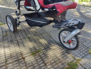 Vendo carrito gemelar JANE PowerTwin en buen estado. Es rojo y tiene dos asientos acolchados. Neumáticos con llanta y freno de disco. Tiene una posición de bloqueo de dirección para esclones que funciona pare tiene la pieza rota. - Marca: JANE, modelo PowerTwin - Color rojo - Dos asientos - Cesta inferior