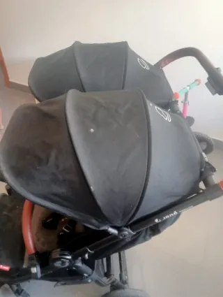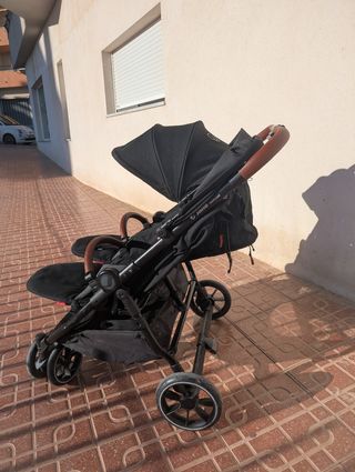 Vendo carrito gemelar Jane Twin². Está en muy buen estado, apenas usado. - Carro gemelar ligero y fácil de plegar. - Incluye dos asientos reclinables. - Color negro con detalles en cuero marrón. - Perfecto para pasear a dos bebés.