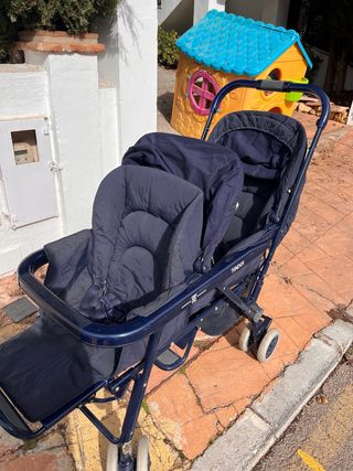 Vendo carrito gemelar en buen estado. Es ligero y fácil de manejar. - Ideal para gemelos o mellizos. - Plegado compacto para facilitar el transporte y almacenamiento. - Incluye dos asientos acolchados y cómodos. - Asa de agarre regulable en altura.