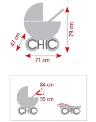 Carrito de juguete para dos muñecos, ideal para juegos de imitación. - Color rosa con detalles en negro. - Incluye bolsa accesoria. - Estructura metálica y textil.