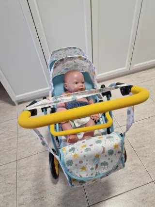 ¡El regalo perfecto para pequeños cuidadores! Vendo precioso carrito de paseo gemelar para muñecas en excelente estado. ✨ Características principales: Capacidad doble: Espacio para dos muñecos/as favoritos, sentados uno detrás del otro (estilo tándem). Diseño encantador: Tela azul con estampado de estrellas y nubes, combinado con detalles en amarillo vibrante. Capotas ajustables: Ambas capotas se pueden subir o bajar de forma independiente. Cesta portaobjetos: Amplia red inferior para llevar los accesorios de los juguetes. Manillar ergonómico: Recubierto de espuma suave. ENTREGA EN GRANADA CAPITAL