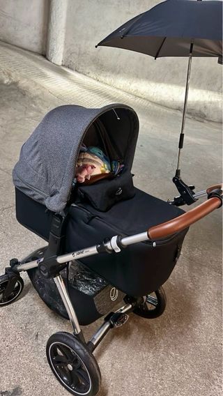 Carrito cómodo, moderno y, atención padres altos, de los más elevados del mercado. Lo elegimos precisamente para no estar agachándonos cada dos minutos como si estuviésemos buscando el mando debajo del sofá. Con este, la espalda te lo agradecerá. Capazo amplio y cómodo, ideal para que el bebé vaya dormido como un VIP. Se pliega fácil, entra bien en el maletero y está en muy buen estado: limpio, cuidado y listo para usar. Perfecto para paseos, recados o que los abuelos presuman sin dejarse las lumbares.