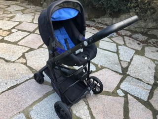 Carrito de bebé de la marca Jane en color azul. Es un cochecito cómodo y funcional. - Capota. - Cesta de almacenamiento. - Ruedas todoterreno. -Incluye capacho y silla de coche en perfecto estado.