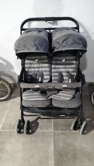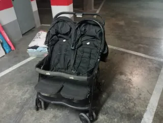 Carrito doble de la marca Joie, ideal para hermanos o gemelos. Su diseño permite transportar a dos niños cómodamente. - Color gris oscuro. - Estructura robusta. - Capotas independientes. Costo 290€ usado solo 2 o 3 veces Precio no negociable: 632091815