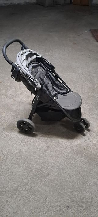 Carrito de bebé de la marca Joie en color gris. Es ligero y fácil de plegar. - Diseño moderno y funcional. - Ruedas delanteras giratorias. - Capota ajustable. - Plastico para la lluvia - con uso pero funcionando perfectamente - muy estable con ruedas resistentes