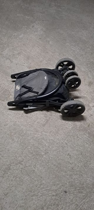 Carrito de bebé de la marca Joie, en buen estado y con poco uso. - Color gris oscuro. - Incluye arnés de seguridad. - Capota para el sol.