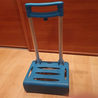 Se vende carrito porta-mochila para niñ@s, en color turquesa. Está en buen estado. - Ideal para transportar mochilas escolares. - Asa de agarre cómoda y resistente. - Ruedas funcionales para facilitar el desplazamiento. - Estructura de plástico y aluminio.