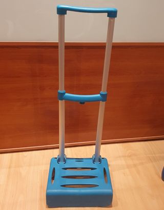 Carrito auxiliar de color azul, ideal para transportar mochilas o bolsas. - Estructura de metal y plástico. - Mango ergonómico para un agarre cómodo. - Base amplia y resistente. - Extensible tirador