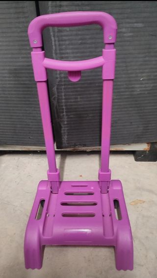 Se vende carrito porta mochila de color morado. Está en buen estado. - Asa de transporte extensible. - Base resistente. - Ideal para transportar mochilas escolares.