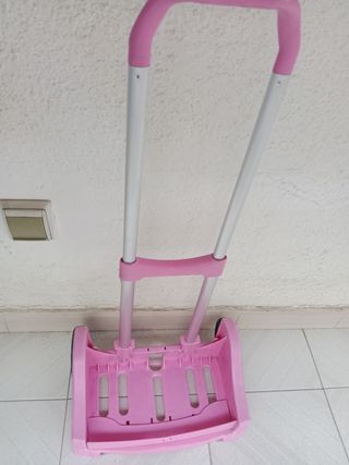 Vendo carrito porta-mochila de la marca Safta, en color rosa. Es ligero y fácil de transportar. - Ideal para llevar la mochila cómodamente. - Estructura de plástico resistente. - Asa telescópica de aluminio, altura regulable - Dos ruedas para facilitar el desplazamiento.