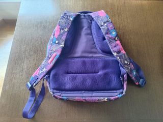 Mochila escolar grande con un bonito estampado floral. - Diseño con flores en tonos rosa, morado y azul. - Dos Cremalleras en color azul. - Capacidad de 21 litros. - Forro interior de color rosa. Un bolsillo principal con compartimento interior protector para portátil y un bolsillo delantero. Dos bolsillos laterales de malla de fácil acceso. Asas regulables, parte posterior acolchada y transpirable, base reforzada. Permite añadir un carrito porta-mochilas. Composición tejido: exterior y forro interior de poliéster. Medidas: 45 x 30 x 12 cm.