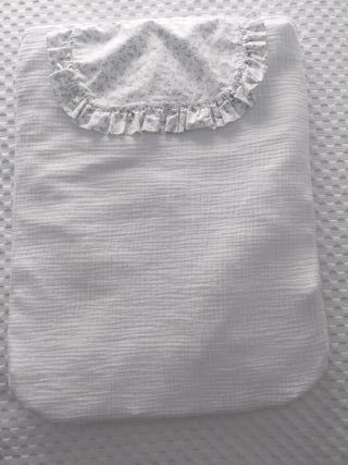 Colcha para carrito de paseo de la marca Mimitos Home. Es desenfundable con relleno, para usar tanto en verano como invierno. Con un estampado floral y volante, y es reversible. Su precio en tienda es de 69,00 € y está prácticamente nuevo solo está usado un par de veces. - Tejido suave y ligero. - Diseño con estampado floral. - Detalle de volante.
