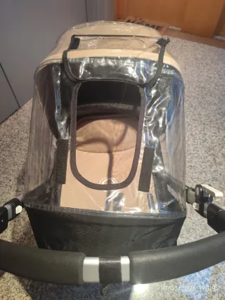 Medio año de uso, está nuevo , con garantía . Cubre cestas repelente de agua comprado a parte incluido en el pack. Características principales - Plegado patentado con una mano, sin quitar la silla ni el capazo. - Compacto, se sostiene en pie y es fácil de almacenar. - Suspensión completa con ruedas de diseño urbano. - Cestilla de compras que puede cargar hasta 10 kg. - Almacenamiento flexible con cesta trasera adicional. - Capazo acolchado completo con panel ventilado. - La silla reversible es completamente reclinable, usando una mano. - Ligera (9,9 kg con silla). - Capota extensible con protección solar UPF 5.