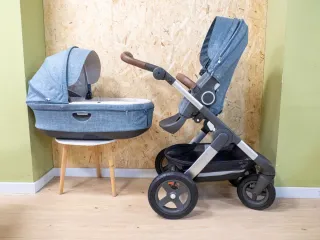 Vendo Stokke Trailz en excelente estado, el modelo más robusto y "SUV" de la marca. PVP en 2022 de 1.750€ (conjunto completo con capazo). Es ideal para cualquier terreno gracias a su suspensión reforzada y ruedas grandes. INCLUYE: Chasis todoterreno de alta resistencia. Capazo amplio con colchón transpirable y excelente ventilación. Silla de paseo reversible (mirando a los padres o hacia adelante). Cesta de compra XL impermeable (soporta hasta 10 kg). PUNTOS CLAVE: Posición elevada: favorece el contacto visual y protege tu espalda. Manillar ergonómico ajustable en altura y ángulo. Capota extensible con protección sola