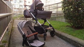 Cochecito Silver Cross Wave de color Gris y muy alta calidad y muy resistente en todo tipo de terrenos. Tenemos dos pequeños y no podríamos haber estado más satisfechos con este cochecito. Lo compramos en El Corte Inglés, Vitoria, y incluye: Silla, chasis, capazo, y protector de lluvia (capazo como para la silla). Ideal para 1 o 2 niños. Defectos: manillar y reemplazó el arnés Silver Cross de 5 puntos con un arnés nuevo