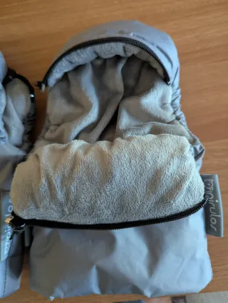 Manoplas de tejido polar gris para proteger las manos del frío en el carrito. - Forro interior suave. - Cierre con botones a presión. - Diseño adaptable a la mayoría de carritos.
