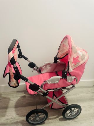Carrito de muñecas en color rosa, marca Daisy Chain. Apenas usado, está como nuevo. - 2 en 1. Capazo convertible en silla de paseo. - Puede ir mirando hacia adelante o hacia atrás. - Manillar regulable en altura (de 46 a 85 cms). - 4 posiciones de reclinado. - Plegable para fácil transporte. - Cesta de almacenaje inferior.