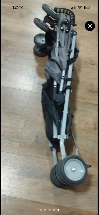 Carrito de bebé en color gris, ideal para paseos cómodos,tiene roce en el manillar y la barra de la silla pero tiene puesto unos protectores nuevos,la capota está rozada del sitio de donde se guardada,puede tener algún roce de uso cotidiano,tiene su cesta aunque no sale en la foto y si plástico para lluvia - Capota extensible. - Cesta de almacenamiento. - Ruedas todoterreno. - Manillar ajustable.