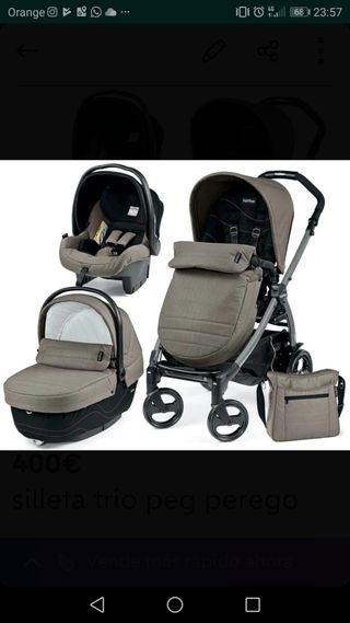 Carrito multifuncional.Capazo+silla paseo+maxicosi. Además tengo también el patinete con sillón para hermano mayor. Al chasis le cuesta un poco cerrarse, pero lo demás está en perfectas condiciones