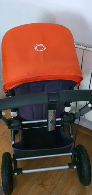 Carrito Bugaboo Cameleon en color naranja y morado. - Chasis de aluminio. - Cesta de almacenamiento inferior. - Capazo y silla reversible. _Capazo+silla de paseo+ capazo para el coche _4 capotas (2invierno 2verano) _1 cubierta plastico para la lluvia+ sombrilla etc Entrega en mano.